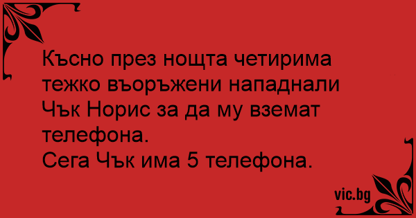 Късно през нощта четирима тежко въоръжени нападнали Чък Норис за да му вземат телефона.