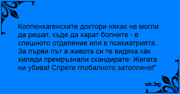 Кoппенхагенските доктори някак не могли да решат, къде да карат болните - в спешното отделение или в психиатрията.
