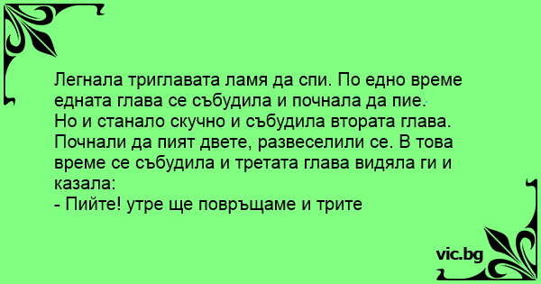 Легнала триглавата ламя да спи. По едно време едната глава се събудила и почнала да пие.