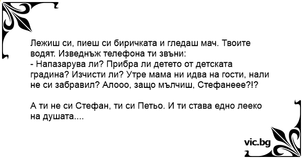 А ти не си Стефан, ти си Петьо. И ти става едно лееко на душата....