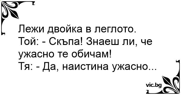 Той: - Скъпа! Знаеш ли, че ужасно те обичам!