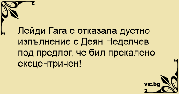 Лейди Гага е отказала дуетно изпълнение с Деян Неделчев под предлог, че бил прекалено ексцентричен!