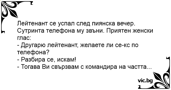 - Другарю лейтенант, желаете ли cekc по телефона?