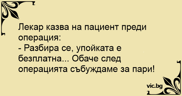 - Разбира се, упойката е безплатна... Обаче след операцията събуждаме за пари!