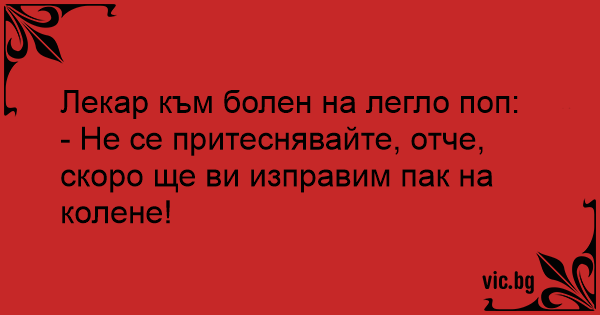 - Не се притеснявайте, отче, скоро ще ви изправим пак на колене!