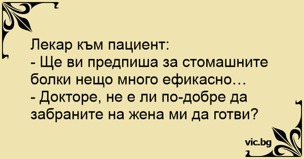 - Докторе, не е ли по-добре да забраните на жена ми да готви?