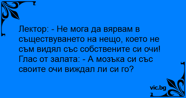 Глас от залата: - А мозъка си със своите очи виждал ли си го?