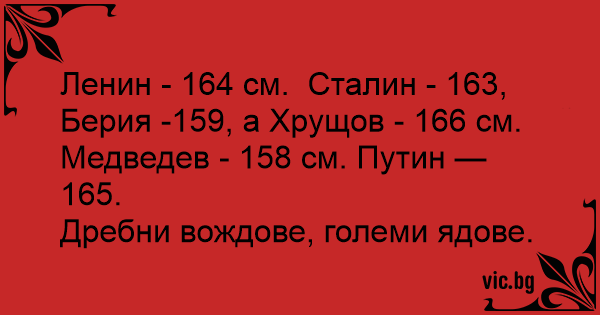 Берия -159, а Хрущов - 166 см.