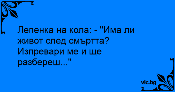 Лепенка на кола: - "Има ли живот след смъртта? Изпревари ме и ще разбереш..."