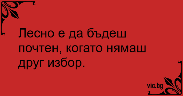 Лесно е да бъдеш почтен, когато нямаш друг избор.