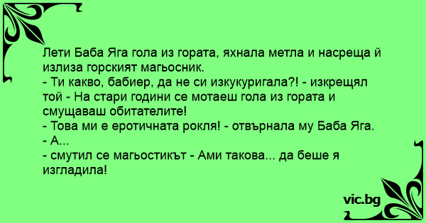 - Това ми е еротичната рокля! - отвърнала му Баба Яга.