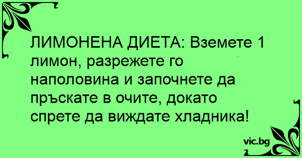 ЛИМОНЕНА ДИЕТА: Вземете 1 лимон, разрежете го наполовина и започнете да пръскате в очите, докато спрете да виждате хладника!
