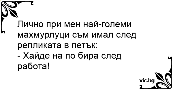 Лично при мен най-големи махмурлуци съм имал след репликата в петък: