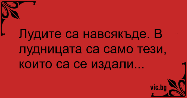 Лудите са навсякъде. В лудницата са само тези, които са се издали...
