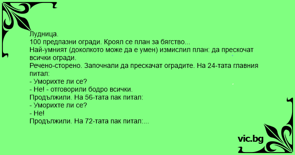 • Вицове от Facebook от нашата страница https://www.facebook.com/www.vic.bg