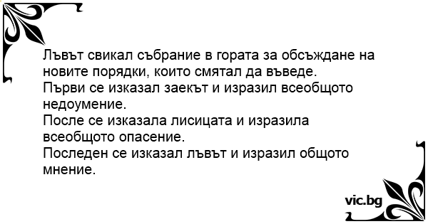 Първи се изказал заекът и изразил всеобщото недоумение.