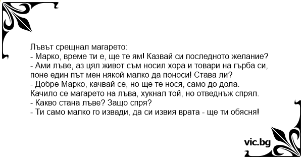- Марко, време ти е, ще те ям! Казвай си последното желание?