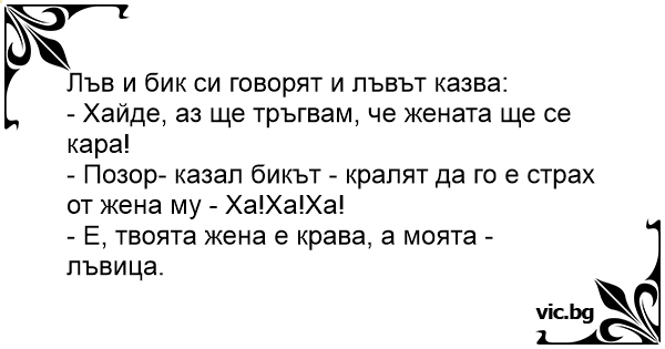 - Позор- казал бикът - кралят да го е страх от жена му - Ха!Ха!Ха!