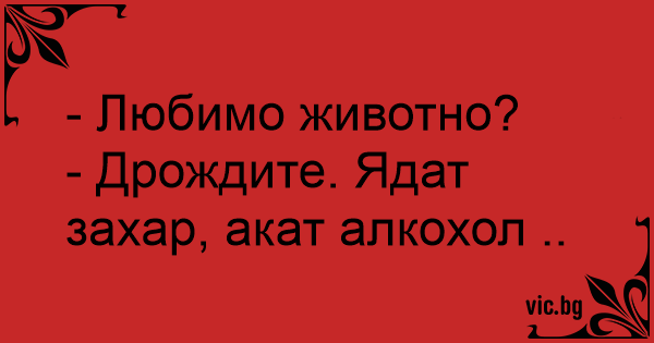 - Какое твое любимое животное? - Дрожжи. Жрут сахар и срут спиртом.