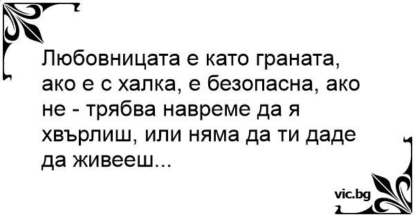 Любовницата е като граната, ако е с халка, е безопасна, ако не - трябва навреме да я хвърлиш, или няма да ти даде да живееш...