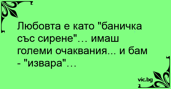 Любовта е като "баничка със сирене"… имаш големи очаквания... и бам - "извара"…