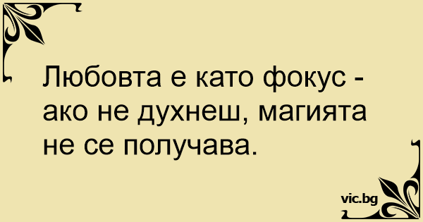 Любовта е като фокус - ако не духнеш, магията не се получава.