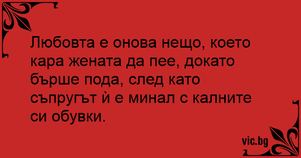 Любовта е онова нещо, което кара жената да пее, докато бърше пода, след като съпругът ѝ е минал с калните си обувки.