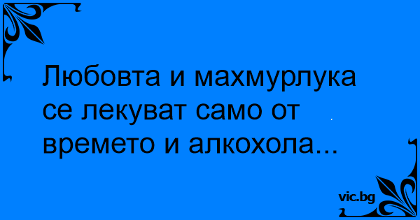 Любовта и махмурлука се лекуват само от времето и алкохола...