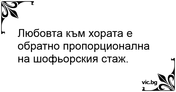 Любовта към хората е обратно пропорционална на шофьорския стаж.