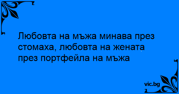 Любовта на мъжа минава през стомаха, любовта на жената през портфейла на мъжа