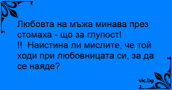 !! Наистина ли мислите, че той ходи при любовницата си, за да се наяде?
