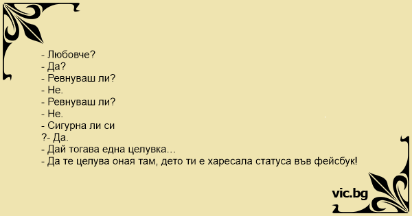 - Да те целува оная там, дето ти е харесала статуса във фейсбук!