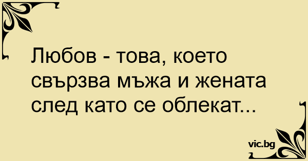 Любов - това, което свързва мъжа и жената след като се облекат...<br />