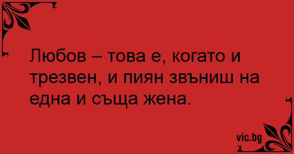 Любов – това е, когато и трезвен, и пиян звъниш на една и съща жена.