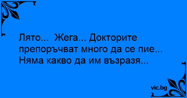 Лято... Жега... Докторите препоръчват много да се пие... Няма какво да им възразя...