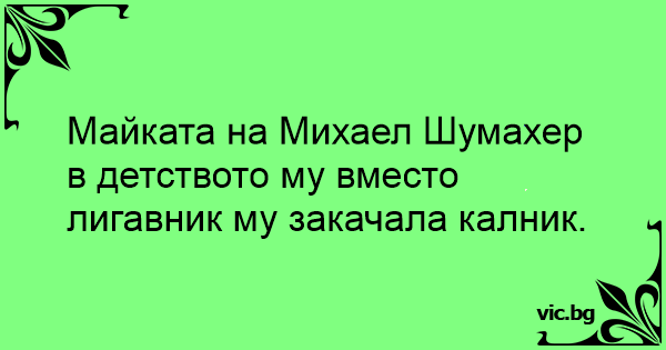 Майката на Михаел Шумахер в детството му вместо лигавник му закачала калник.