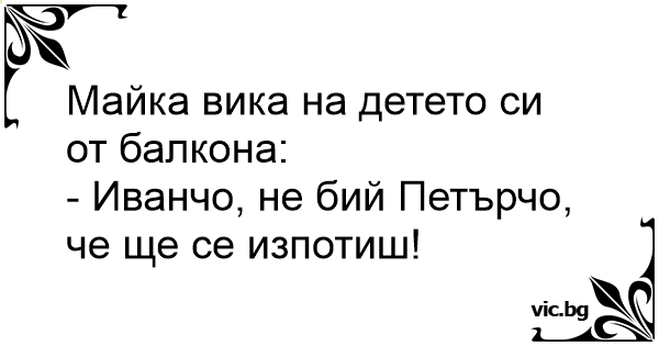 - Иванчо, не бий Петърчо, че ще се изпотиш!