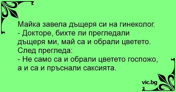 - Докторе, бихте ли прегледали дъщеря ми, май са и обрали цветето.