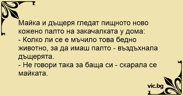 - Колко ли се е мъчило това бедно животно, за да имаш палто - въздъхнала дъщерята.