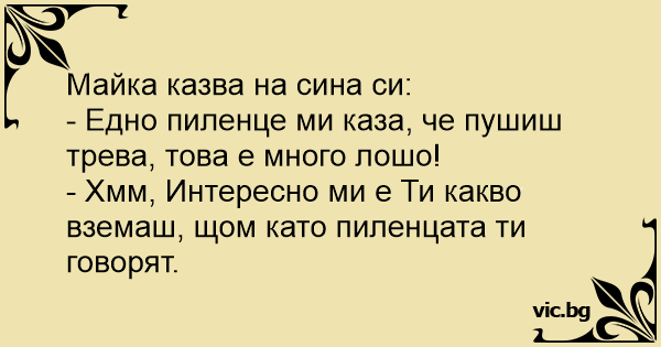 - Хмм, Интересно ми е Ти какво вземаш, щом като пиленцата ти говорят.