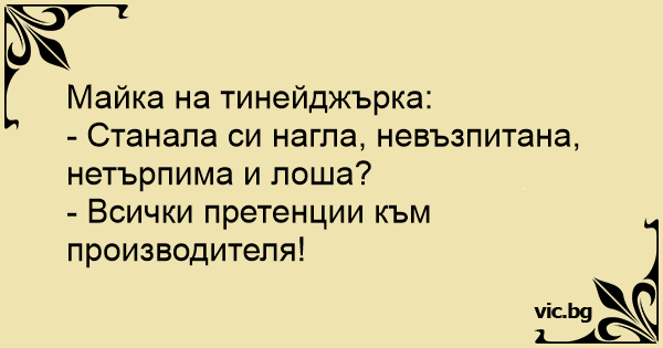 • Вицове от Facebook от нашата страница https://www.facebook.com/www.vic.bg