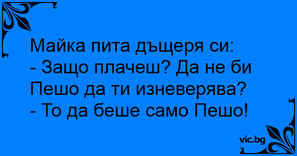 - Защо плачеш? Да не би Пешо да ти изневерява?