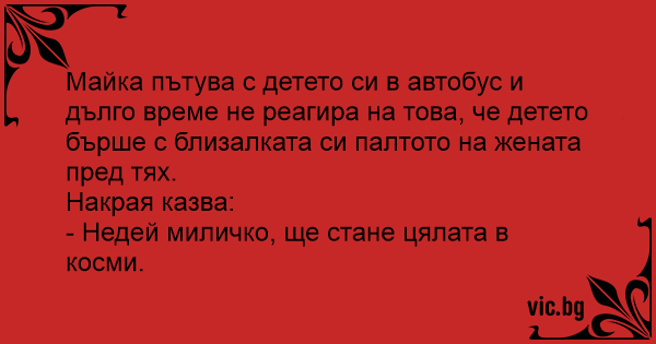 Майка пътува с детето си в автобус и дълго време не реагира на това, че детето бърше с близалката си палтото на жената пред тях.