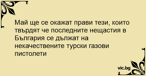 Май ще се окажат прави тези, които твърдят че последните нещастия в България се дължат на некачествените турски газови пистолети