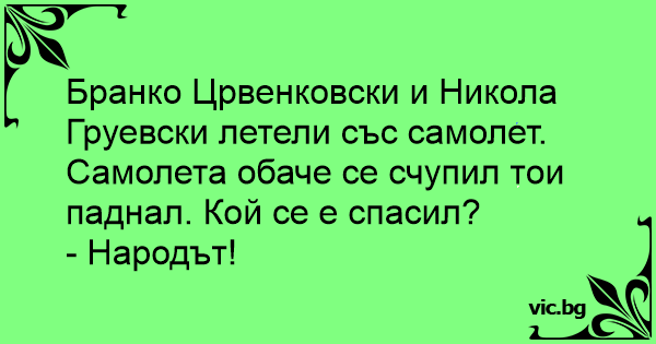 Бранко Црвенковски и Никола Груевски летели със самолет. Самолета обаче се счупил тои паднал. Кой се е спасил?