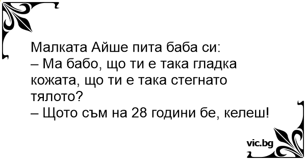 – Ма бабо, що ти е така гладка кожата, що ти е така стегнато тялото?