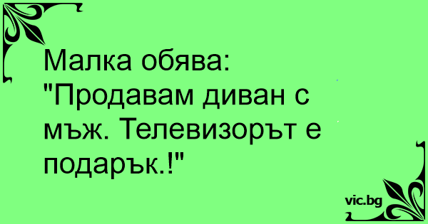 "Продавам диван с мъж. Телевизорът е подарък.!"