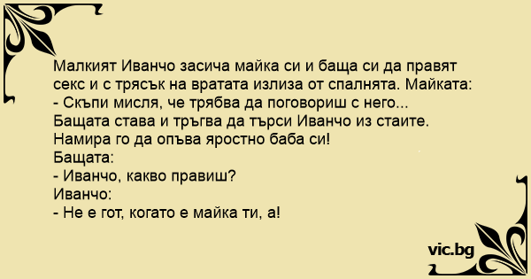 Иванчо ебал баба си в кухнята на масата и в това време влезнал на иванчо баща му и казал: