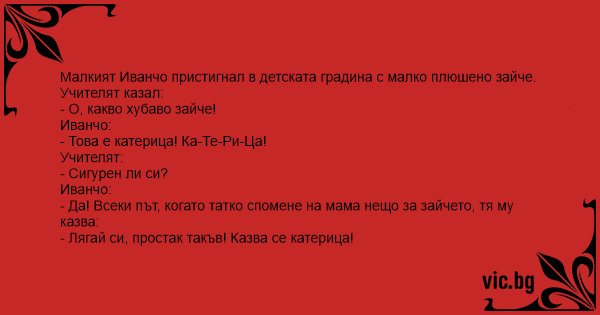 • Вицове от Facebook от нашата страница https://www.facebook.com/www.vic.bg
