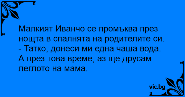 - Татко, донеси ми една чаша вода. А през това време, аз ще друсам леглото на мама.